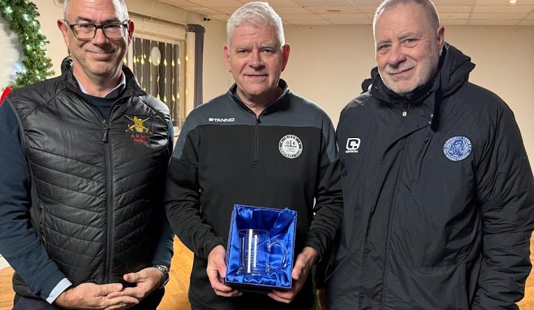 Representatives of the Aldershot DFA (ADFA) attended Cove Football Club last Tuesday evening for the Jewsons Wessex League Division 1 encounter with neighbours Frimley Green. The purpose was to present an ADFA Long Service Award to Cove Secretary Mark Endacott. Mark has been involved in a variety of roles spanning 21 years at Cove. He is currently Chair and Treasurer of Cove Youth and, since 2017, the Football Secretary of Cove FC. Mark initially joined Cove Mini Strikers in 2004 and, for 13 years, managed and coached from Under 7’s to Under 18 level. Mark plays a huge part in the operation of the football club and is fully deserving of this award.